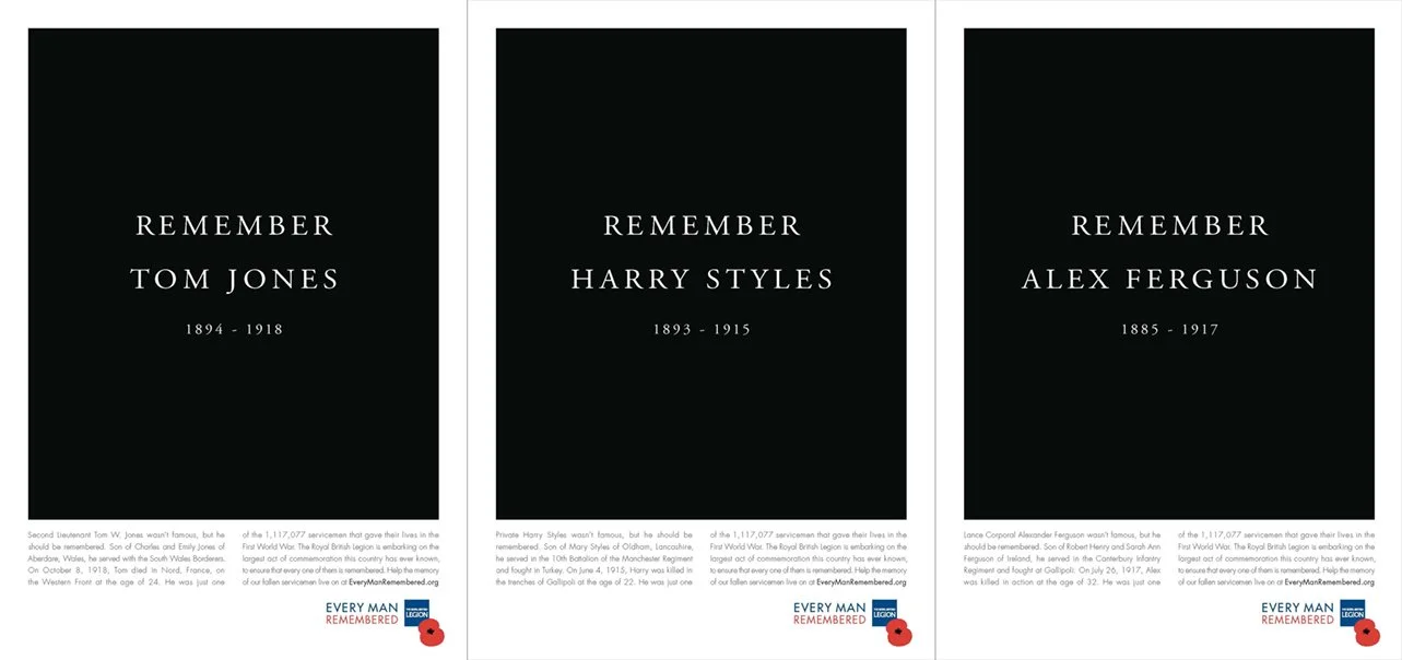 It’s not the Andy Murray who won the 2013 Wimbledon title, it’s the one who died in 1915. That name, along with Harry Styles, Tom Jones, Alex Ferguson and Gordon Brown are famous in the U.K. and around the world, but they also share the monikers with the fallen fighters of the First World War. The Royal British Legion and agency RKCR/Y&R are using these coincidental circumstances to help promote an online campaign to commemorate each and every of the more than million Commonwealth serviceman who died as a result of WWI.